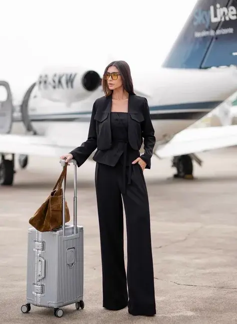 Sofisticado e versátil, o trijunto combina casaco estruturado, blusa tomara que caia e calça de caimento impecável, criando uma produção elegante e completa. Perfeito para looks contemporâneos e cheios de estilo.